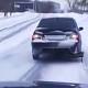 Flat's the way to do it! Motorist gets burst tyre in the snow – you'll never guess ...