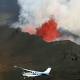 Plane flies over Iceland volcano spewing lava for the perfect action shot